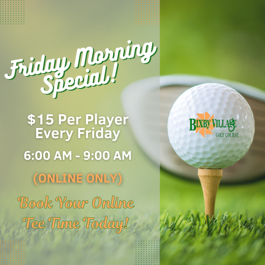 The course rating is 57.5 and it has a slope rating of 87. Bixby Golf is a daily fee golf course with an “open to public” guest policy.